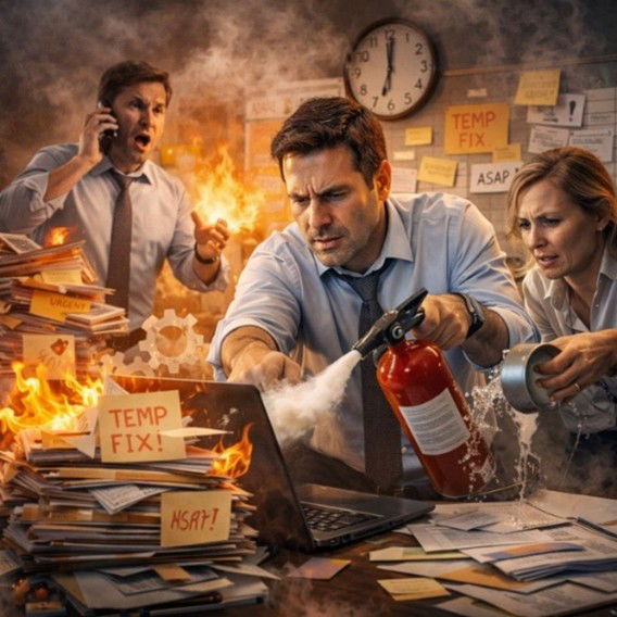 ארגונים רבים פועלים בסביבה תפעולית המאופיינת בעומס רב ומתמשך, בריבוי משימות, בדרישות שירות ברמות גבוהות ולחץ מתמיד לעמידה בלוחות זמנים. במציאות זו, הפעילות היומיומית מנוהלת לא פעם במצב תגובתי (ריאקטיבי) שבו עיקר המאמצים מופנים לפתרון בעיות מיידיות ולכיבוי “שריפות”, לו היה מדובר במקרים בודדים, ניתן היה לטפל בהם באופן חריג, אבל כשזה חוזר על עצמו, כבר מדובר בבעיה. ארגונים שפועלים במצב מתמשך של תגובתיות, כזאת שמתאפיינת בריבוי של כיבוי שריפות, אינם סובלים מבעיה תפעולית נקודתית, אלא מבעיה ניהולית מבנית.
